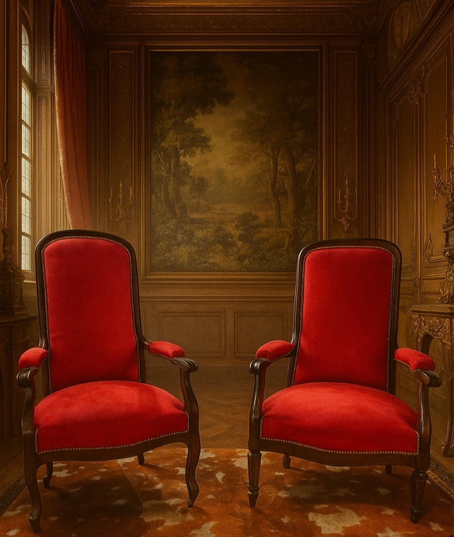 Celle du foyer, avec Louis-Philippe, où le fauteuil devient complice du quotidien, robuste et accessible, tout en préservant le charme des formes anciennes.